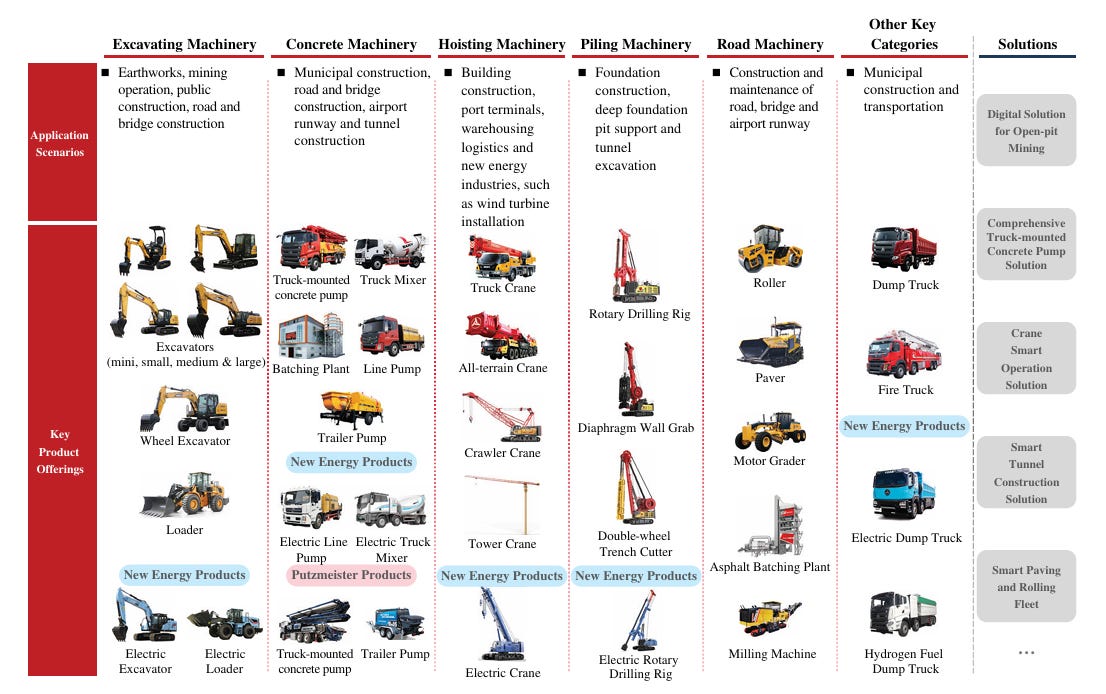Sany Heavy is the largest construction machinery manufacturer in China and third largest globally. Its main products include excavators, concrete equipment, hoisting and piling machines, and road construction equipment.