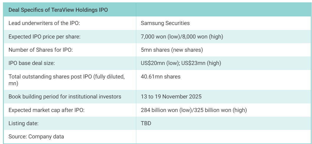 TeraView Holdings is getting ready to complete its IPO in KOSDAQ by end of this year. TeraView Holdings is the first U.K. based company to pursue a listing in Korea.